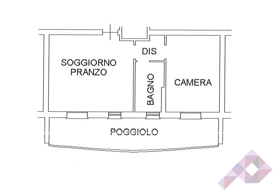 Immobile composto da zona giorno con angolo cottura con uscita su terrazzo abitabile, bagno finestrato con doccia e camera matrimoniale