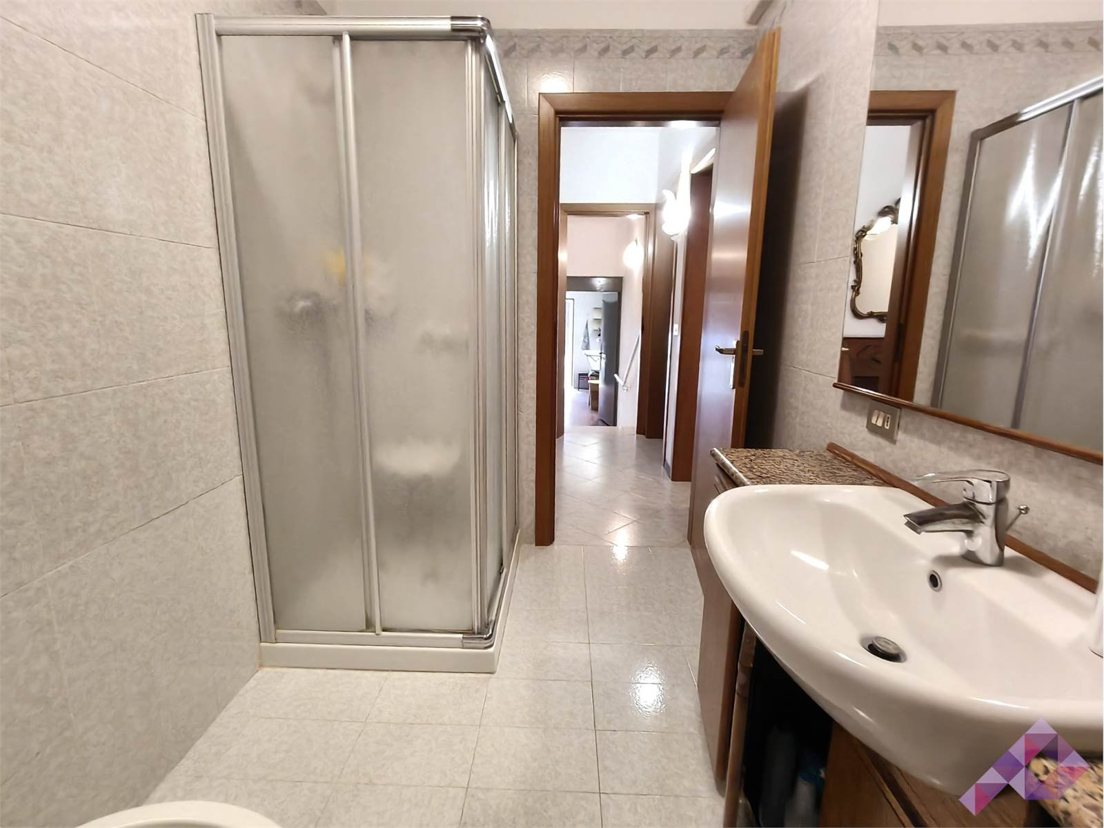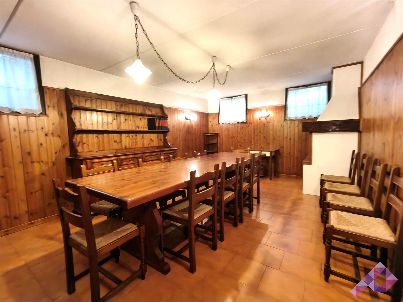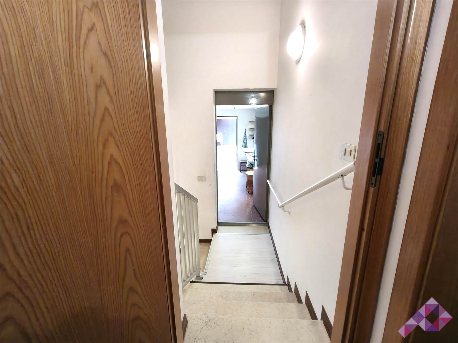 Dalla zona notte si accede a un ulteriore disimpegno che conduce direttamente al garage al piano terra e alla scala interna che porta alla spaziosa taverna con caminetto, perfetta come ambiente ricreativo o zona relax.